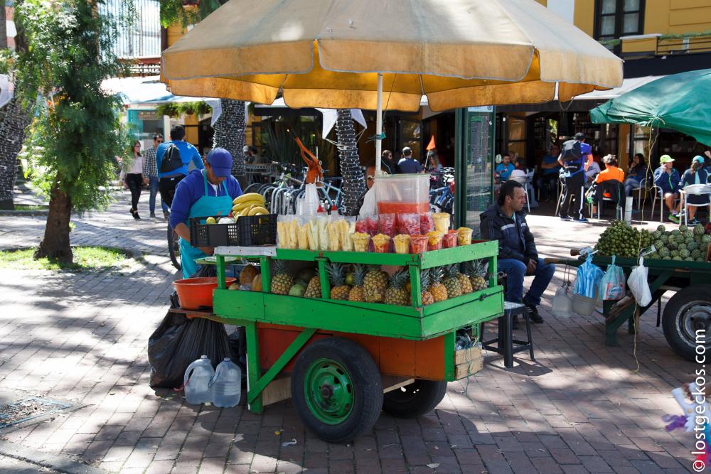 The fresh fruit street vendors remained me a lot of back home tho, we have them a lot too and call them as tukang rujak. The different is in Bogota they serve their half-ripe mango with lime and salt (mango con limon y sel), while in Jakarta, we serve it with sweet and spicy thick sauce.