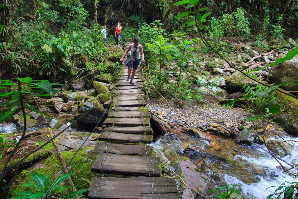 The left picture shows the loop of the long path and it is pretty accurate, I must say. You do find cows on the way and will have to carefully pass 7 dangling wobbly bridges to go up to Acaime, then continue to the next refuge; the La Montana. From there the track will mostly down hill and you can already see the beautiful valley from afar. The valley will be more enjoyable after the long arduous trail. You will appreciate more the view and the tranquil atmosphere.