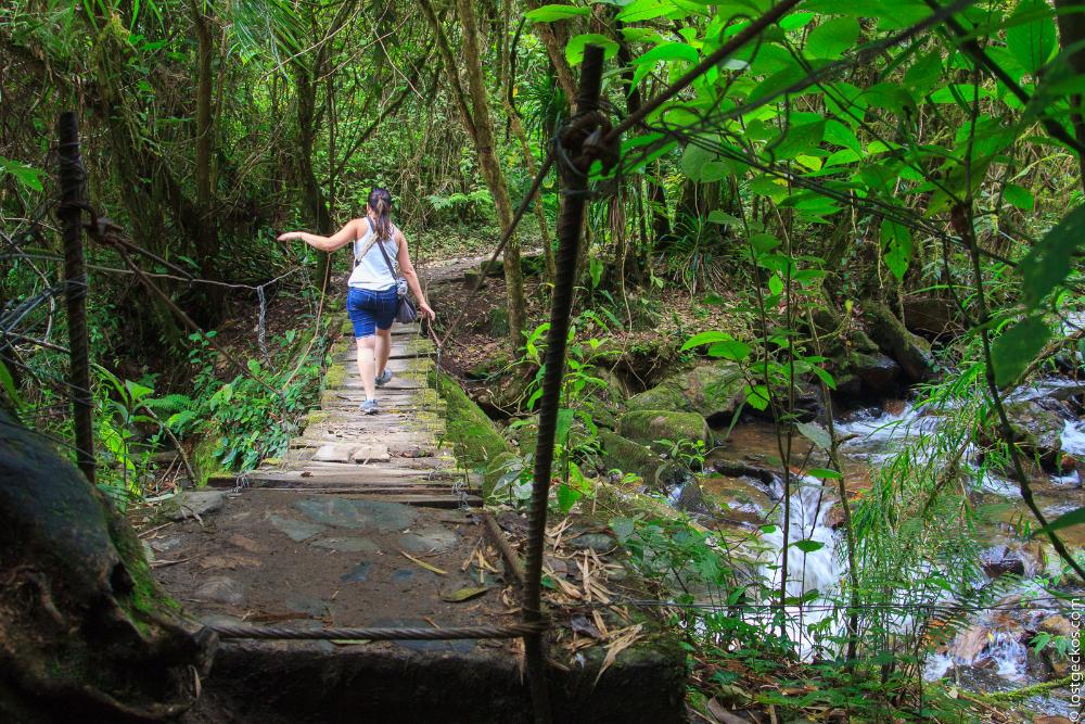 If you have the time (about 6 to 7 hours) and the energy, and up for some adventure, I recommend you to take the right path; the long path heading to Acaime. This long path makes a counterclockwise loop, it will take you to through the green savanna, the dense forest with wobbly bridges, and muddy hiking tracks before you get to the Cocoa valley itself.