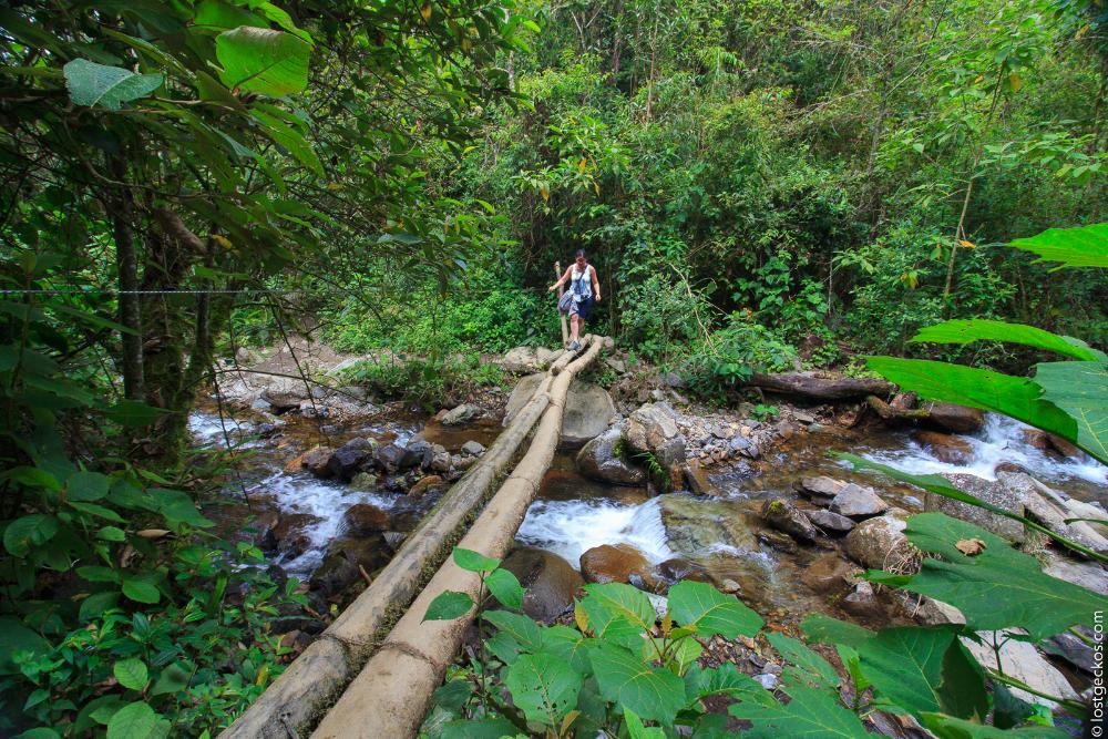 After catching a breath at Acaime, we continued walk to La Montana, the next refuge. The trail to La Montana was the toughest. It was steep and foggy (it is the cloud forest anyway). And we managed to get lost on the way... Of course we did..