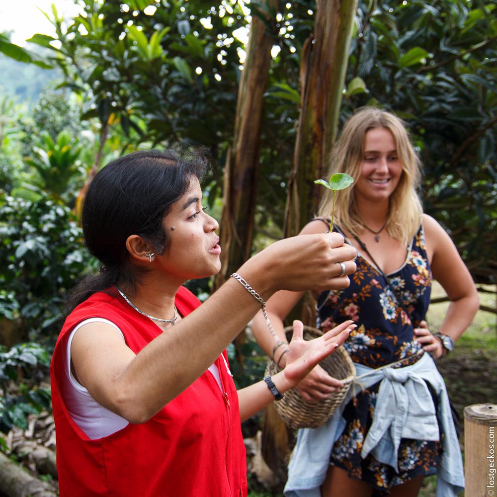After that she took us to the coffee plantation itself. The plantation let's the coffee plants grow as naturally as possible. They plant banana trees among the coffee plants and these trees serve as bug repellent for the coffee plants and at the same time the leaves of the banana serve as canopy to protect the coffee plant from direct sunlight, as Arabica coffee beans don’t grow well with too much heat from the sun.