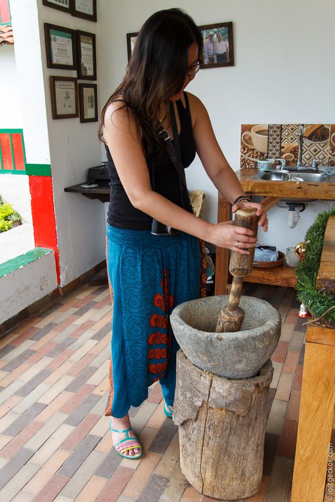 After learning how this Arabica magic beans are planted, grown, dried, and husked, Jasmina taught us how to prepare a cup of Colombian coffee. Different than the way the Europeans and the Middle Easterners prepare their coffee, the Colombians prefer their coffee to be thin and rather weak. Jasmina prepared us a cup of freshly brewed coffee, which honestly, was too mild to our taste, but very fragrant.