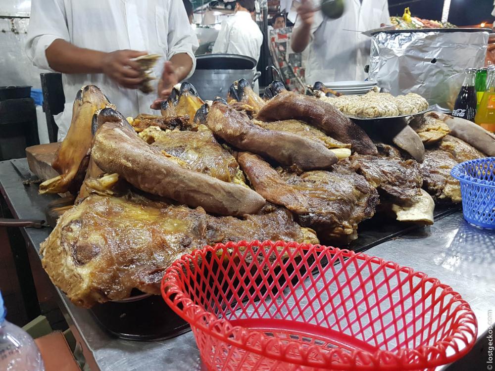 If you are brave enough to dive into the overwhelming crowd and intense atmosphere at the outer layer of the food court, you will find some ‘overlooked’ food stalls that sell nothing but cow and sheep innards as well as head parts at the core of this food court. These stalls are pretty empty of tourists and most of their clients are middle-aged locals. Take a seat and ignore the menu before you get queasy reading what they are serving.