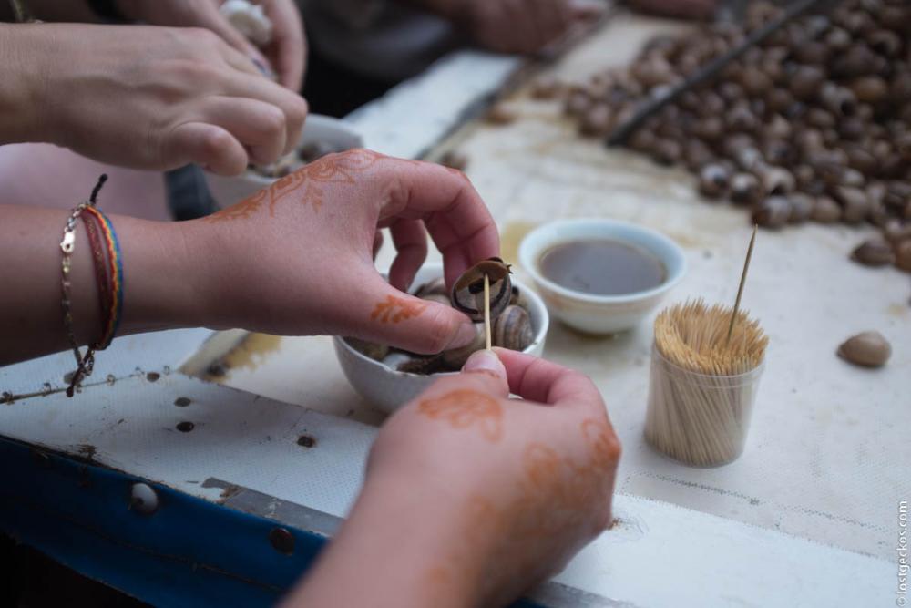 Ghoulal or snail soups are popular across the country It’s a very common street food in Morocco and you can find Ghoulal carts in each city square. I got to taste of my first bowl of Ghoulal in Rabat's Medina. Ghoulal might be not for those of you that are picky and squeamish eaters since the main ingredient is the land snail, cooked entirely with its shells for hours with a plethora of spices.