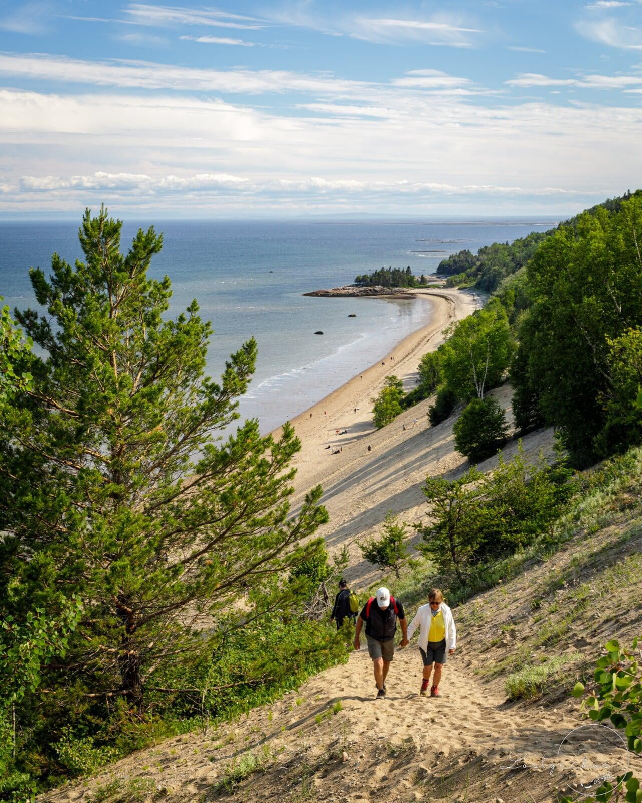 After recharging our energy at Tadoussac, we drove a tiny bit further from Tadoussac to have an afternoon walk by the beach at the giant dunes. Tadoussac dunes or locally known as Les Dunes is a desert-like hill of sand dunes. IMHO, the scenery from these dunes felt like I was somewhere else. It almost looks tropical with the yellow sand and blue water.