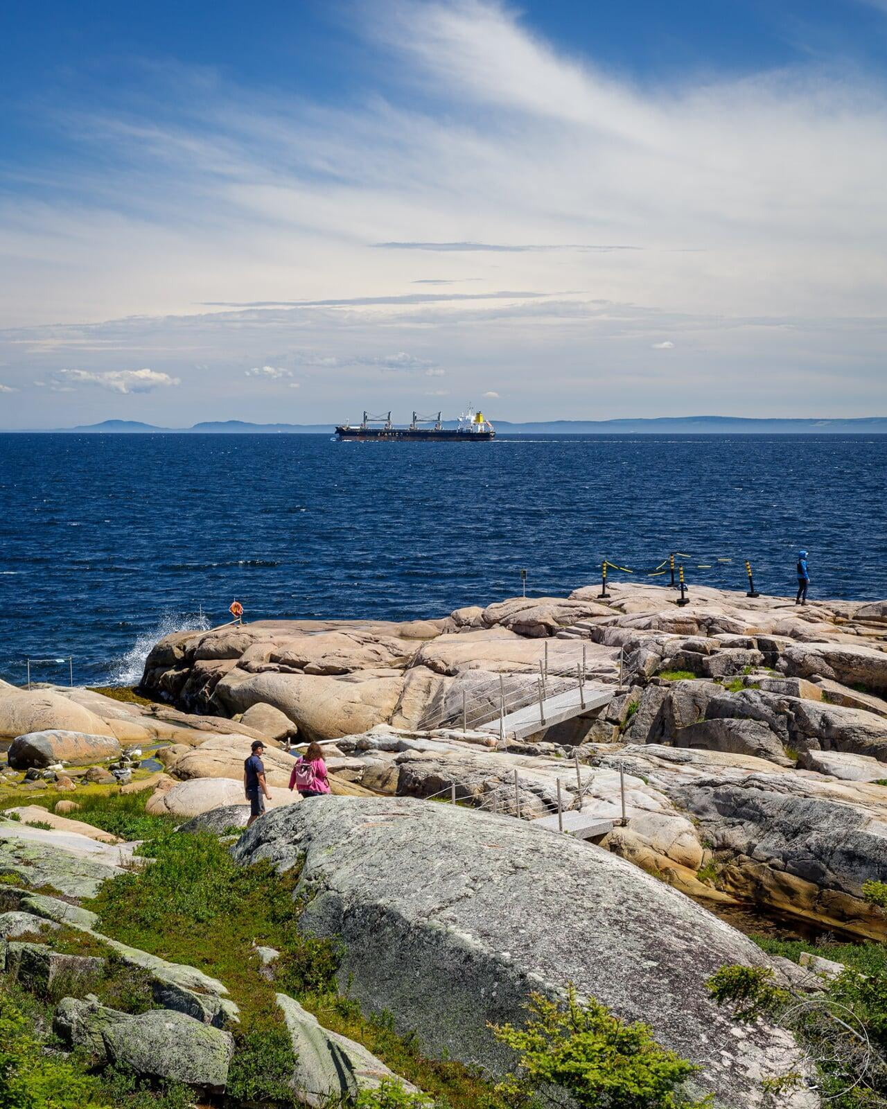 On the way back to Québec after our sea excursion, we stopped at the Cap de Bon-Désir, an interpretation and observation for marine mammals of the St Lawrence estuary. Upon arrival, you can explore the lighthouse station, than take the Harbour Porpoise trail to the shores of St. Lawrence river estuary. I really enjoyed spending time at the massive flat rocks lookout. The scenery from this look out is incredible. Naturalists from the observation center will go around and share interesting facts and knowlegde about marine mammals, including how to spot whales and better understand what you are looking out.