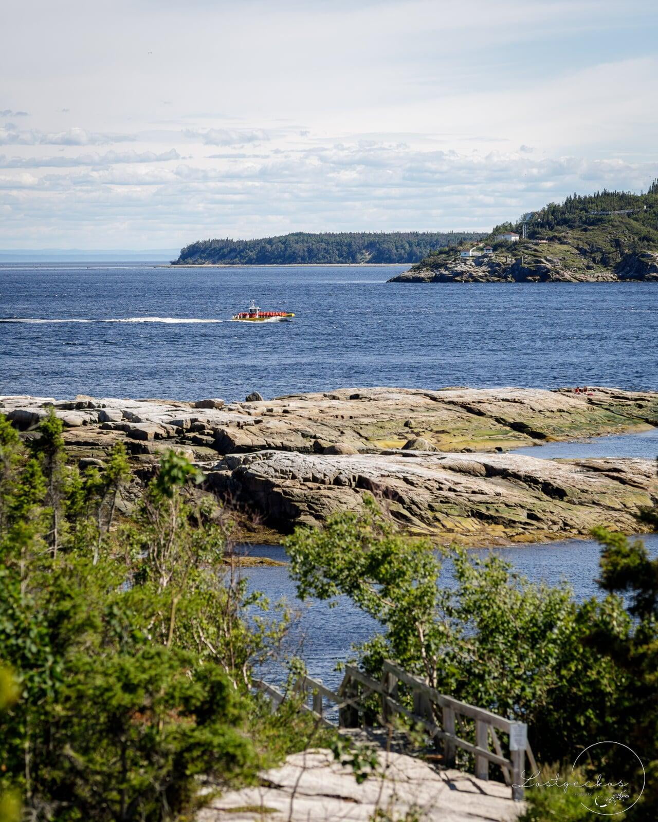 La Point-Islet trail is a looped footpath by the Tadoussac marina. You can access this trail for free. The trail starts with a short walk in the forest that leads to a massive rock lookout point facing the St. Lawrence river and the edge of the Fjord Saguenay. If you’re lucky you can spot white belugas, seals, and even whales! Pack a blanket and food, and just hang out on the massive rocks with the stunning scenery Tadoussac is famous for.
